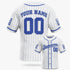 Custom Pinstripe Baseball Jersey White and Blue With Piping - Design Your Own