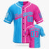 Custom Pinstripe Split Baseball Jersey Light Blue and Pink with White Piping - Design Your Own