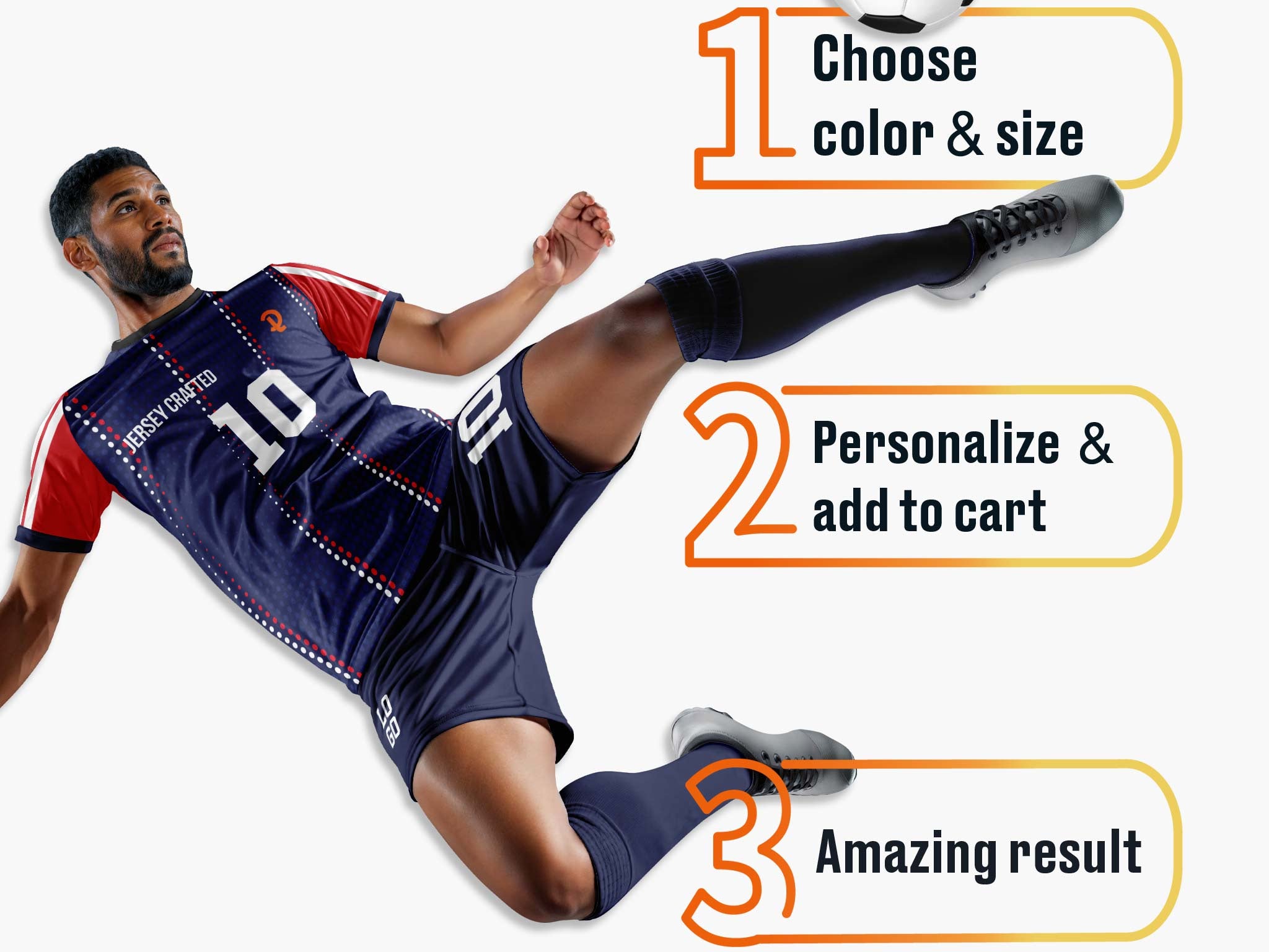 - Made from premium polyester, our custom soccer jerseys feature moisture-wicking, breathable fabric that keeps you cool and comfortable on the field. The athletic fit and lightweight design allow for full mobility, making them perfect for games, training sessions, or everyday wear.