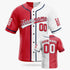 Custom Split Baseball Jersey Red and White with Navy Piping - Design Your Own